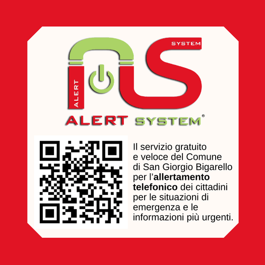 Il Comune di San Giorgio-Bigarello mette a disposizione della cittadinanza il servizio denominato Alert System che ha la funzione di inviare telefonicamente dei messaggi vocali e raggiungere contemporaneamente tutti i residenti o una parte di essi, in funzione alle effettive esigenze, per informazioni di pubblica utilità.